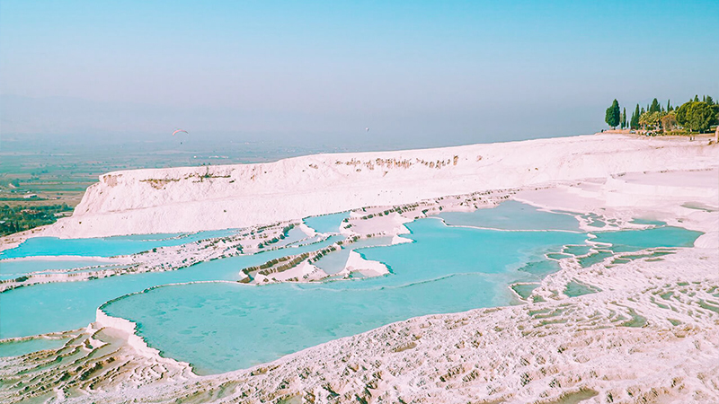 Pamukkale, que significa “Castelo de Algodão” em turco, é uma maravilha natural que deixará você maravilhado. Suas piscinas de travertino branco em cascata e ricas em minerais criam uma paisagem surreal que se assemelha a um castelo de algodão. Dê um mergulho nas águas quentes ricas em minerais, acredita-se que tenham propriedades curativas, e admire as vistas impressionantes da antiga cidade de Hierápolis, situada no topo das piscinas. Pamukkale é um Patrimônio Mundial da UNESCO e uma verdadeira maravilha da natureza.